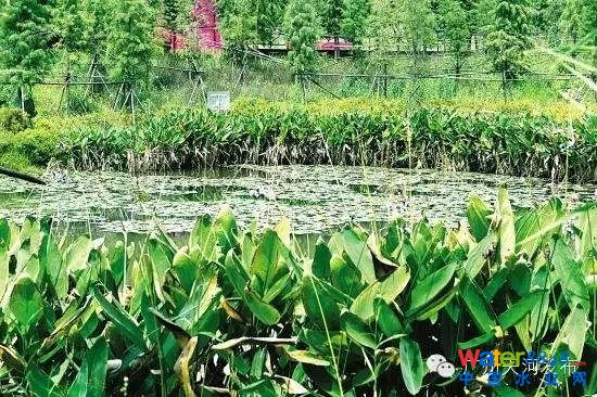 公園里看起來青翠欲滴的花花草草也大有玄機。公園里,沿著廣場走下去就是沉淀塘,一人多高的蘆葦、海芋隨風飄蕩,它們固沙力強、吸污力強,能過濾大顆粒懸浮物、細小沙礫和易沉降的污染物。往下走是狀如長劍的菖蒲、直立挺拔的水芹,它們的作用是凈化病原體;水中的紙莎草、睡蓮不僅為景色增艷,也有吸收水中重金屬、保持水質(zhì)穩(wěn)定的功效。
