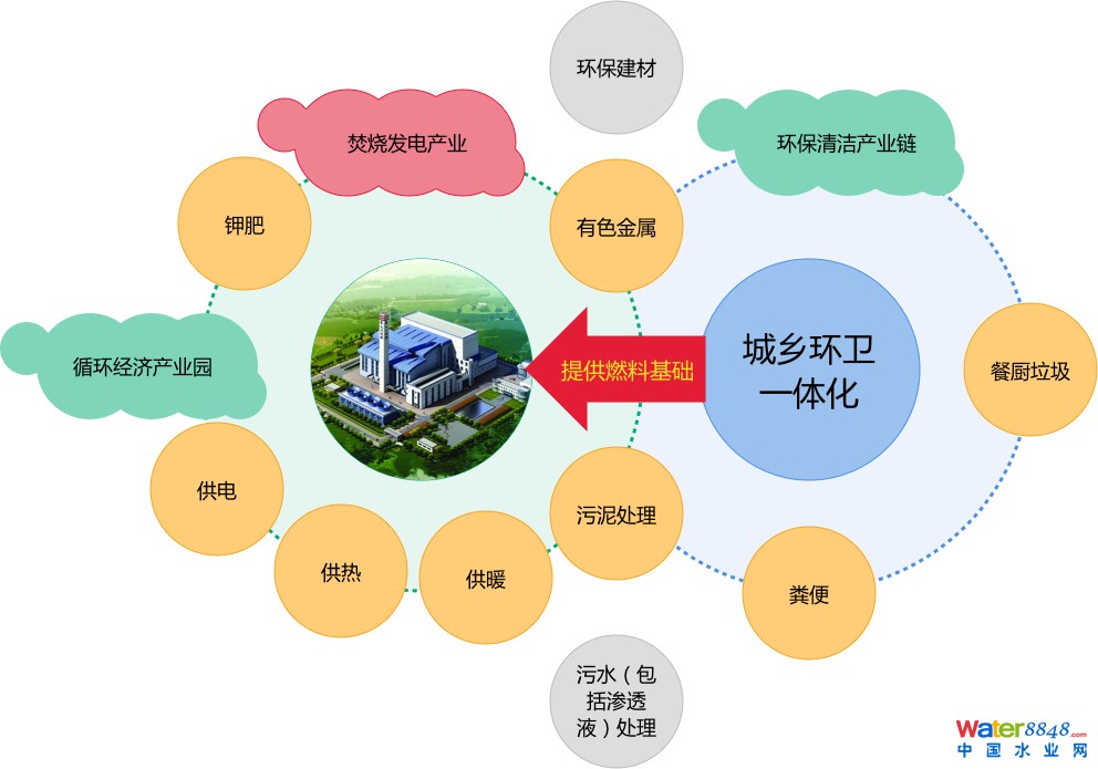 垃圾通過焚燒發(fā)電產(chǎn)生的熱能,除了滿足每個(gè)項(xiàng)目自身使用以外,還可以為項(xiàng)目地城鄉(xiāng)供熱。